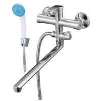 Кран имеет длинный г-образый излив с поворотом на 360 градусов, что позволяет удобно набирать воду в ванну. В комплекте идет 3-режимная лейка для душа: распыление, брызги шампанского и распыление с брызгами шампанского.