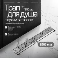 Трап-лоток с горизонтальным выпуском с сухим затвором цвет глянцевое золото 70х700 мм. Линейный трап предназначен для отвода воды с пола или поддона под душем. Душевой трап выполнен из нержавеющей стали, что позволит ему долгое время выполнять свои функции, сохраняя эстетический внешний вид. Трап для душа работает по принципу сухого затвора: легкий поплавок диаметром больше сливного отверстия, в случае высыхания воды, просто опускается и закрывает трубу. В рабочем положении вода поднимает и удерживает поплавок на одном уровне, и система работает, как один из вариантов гидрозатвора. Если трап не используется, то вода из затвора испаряется, а поплавок закрывает сливное отверстие раньше, чем вода полностью испарится. Сливной трап линейного типа с гидрозатвором + сухой. Материал корпуса нержавеющая сталь S/S 304. Материал решетки - пластик. Минимальная монтажная высота: 85 мм. Общая высота монтажа: 100-155 мм. Ширина ниши желоба: 70 мм. Скорость стока воды: 30 л/мин. Диаметр слива - 50 мм. Решетка оборачиваемая. Можно как оставить лицевую сторону (глянцевое золото), так и перевернуть решетку и вклеить плитку.