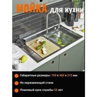 Материал мойки является химически неактивным, не вступает в реакцию с продуктами и полностью безопасен для здоровья человека.
