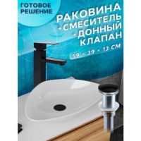 Раковина чаша накладная прямоугольная с керамической накладкой на сливное отверстие Element 600х375х145мм