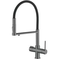 Смеситель для кухни с гибким изливом c подключением к фильтру питьевой воды KERN 2061 оснащен одной рукоятью для регулировки напора и температуры проточной воды, и второй – для регулировки напора воды в фильтре. Фильтрованная вода подается по отдельной трубке и не смешивается с водопроводной водой. Съемный пластиковый аэратор в смесителе обеспечивает равномерный поток воды и ее смягчение. Специальная сетка внутри устройства отфильтровывает разные примеси. Прибор крепится с помощью гайки, нижняя часть вставляется в специальное отверстие для установки и затягивается гайкой. Кран для кухонной мойки выполнен в минималистичном современном стиле с дизайнерским исполнением. Материал в приборе - латунь, надежный материал высокого качества, который обеспечивает великолепное нанесение хромированного покрытия. Гибкий излив очень позитивно влияет на практичность и функциональность. При монтаже достаточно, если в раковине или столешнице имеется одно отверстие, отведенное под смеситель. Как правило, данный подход гарантирует легкий и быстрый монтаж. Диаметр подключения 1/2 дюйма.