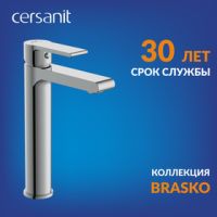 Высокий однорычажный смеситель для раковины Cersanit Brasko 63024 с донным клапаном.